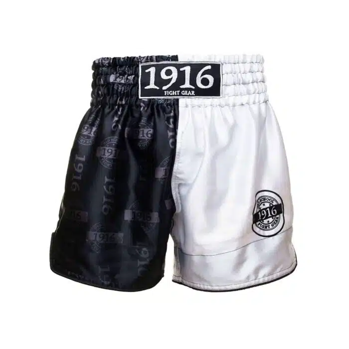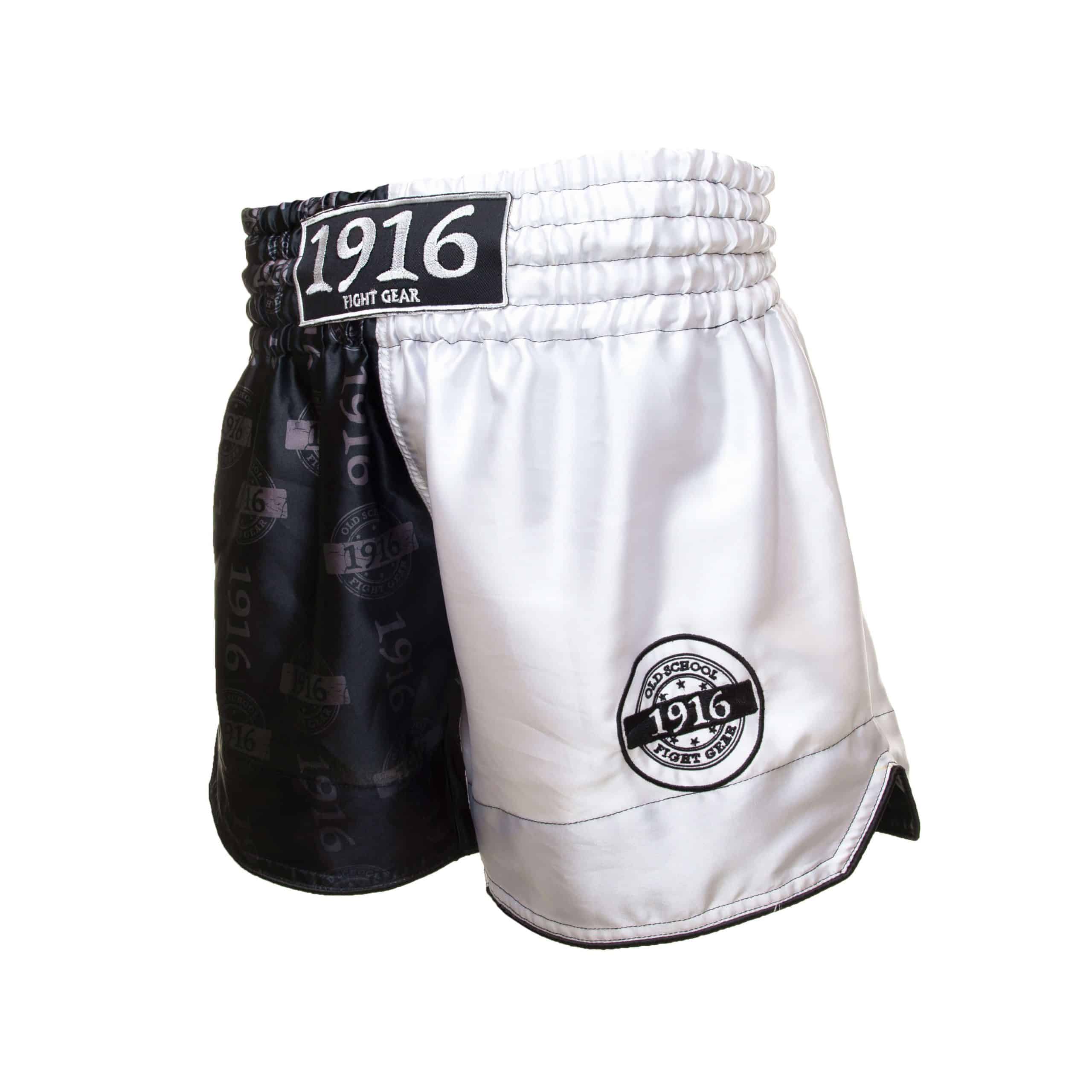Gave twee kleuren kickboksbroek met old school 1916 logo. De kickboksbroek heeft hoge zijsplitten waardoor je een goede bewegingsvrijheid heb onder het trainen.