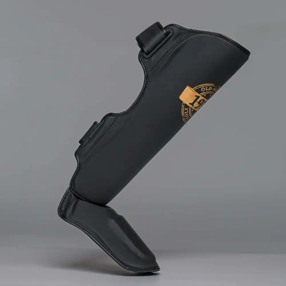 De matte afwerking in combinatie met het klassieke old-school logo in zwart en goud geeft deze scheenbeschermers een chique en professionele uitstraling, ideaal voor vechters die stijl en functionaliteit willen combineren.