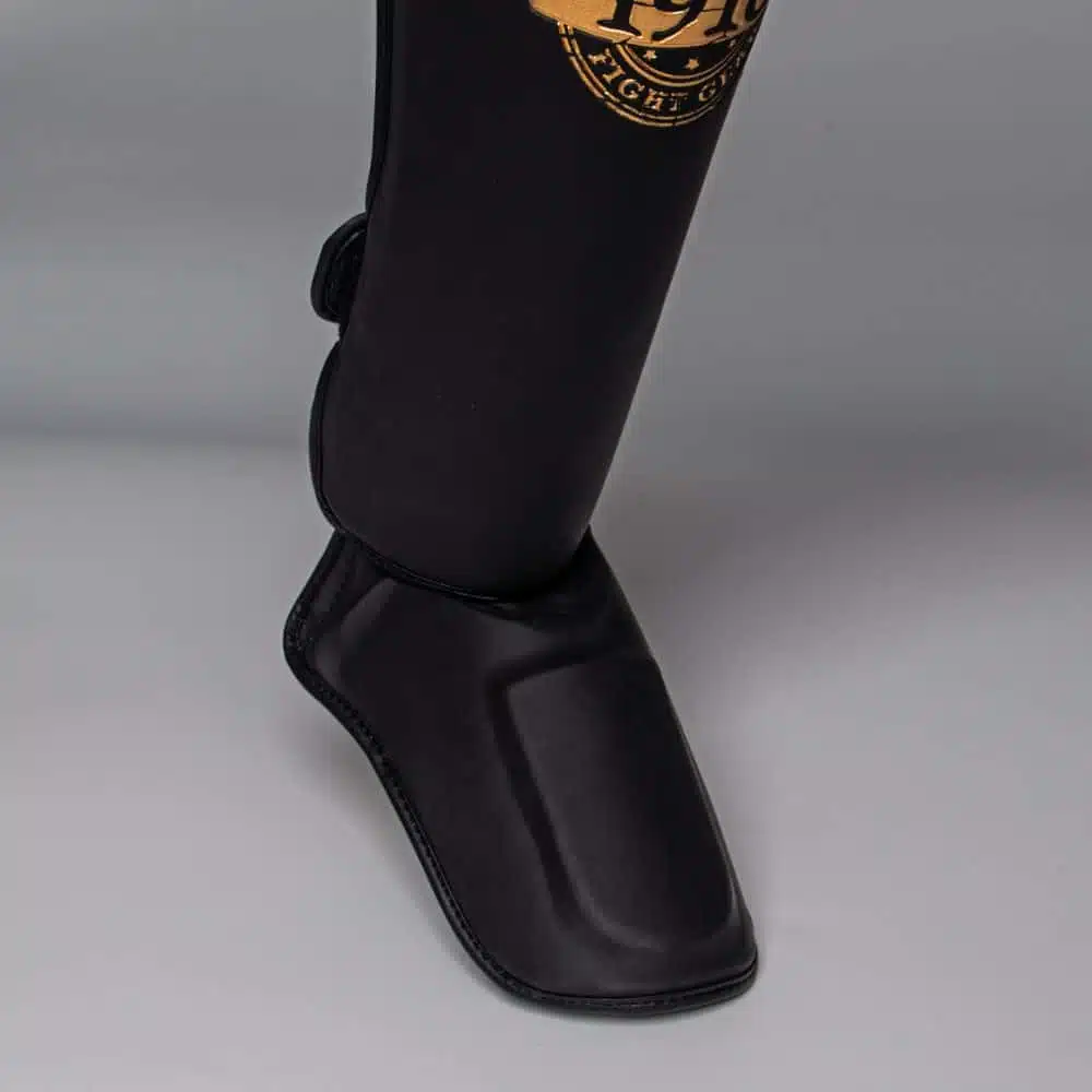 De 1916 Fight Gear Scheenbeschermers Legend Advanced Black/Gold bieden maximale bescherming en comfort tijdens bokszaktrainingen, technische drills en sparringssessies. Ontworpen met extra schokabsorptie, inclusief versterkte wreefprotectie, zorgen deze scheenbeschermers voor optimale veiligheid en stabiliteit bij elke trap en blok.