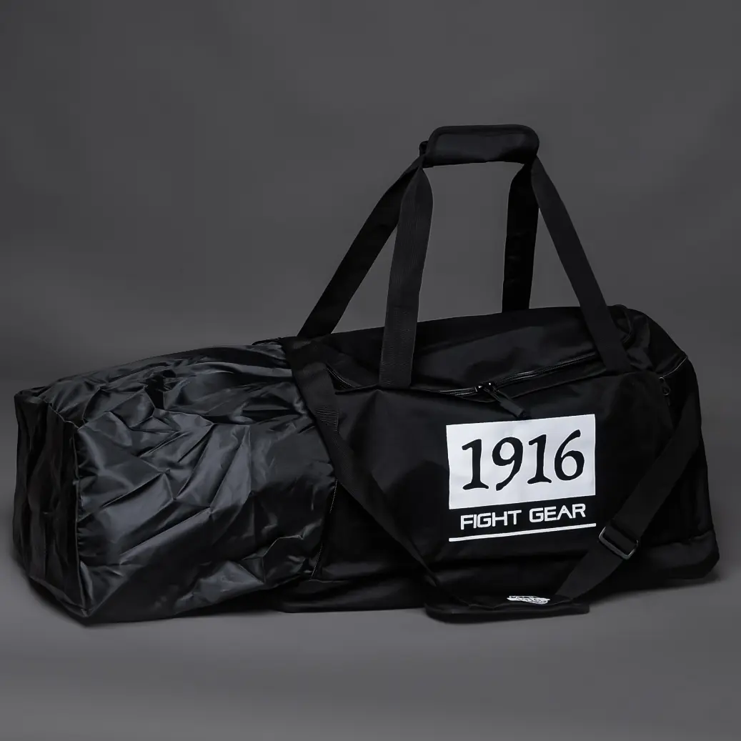 De 1916 Fight Gear Sports bag is een ruime boks sporttas, zeer geschikt voor al je boks materiaal. Gemaakt van stevig polyester met een groot hoofdvak dat optimaal ruimte bied voor sportmaterialen. Hoofdvak is simpel te bereiken door grote rits aan bovenkant. Aan zijkanten zijvak met schoenenzak en vak voor losse spulletjes. Twee handvatten en een schouderriem maken de sporttas makkelijk te dragen.