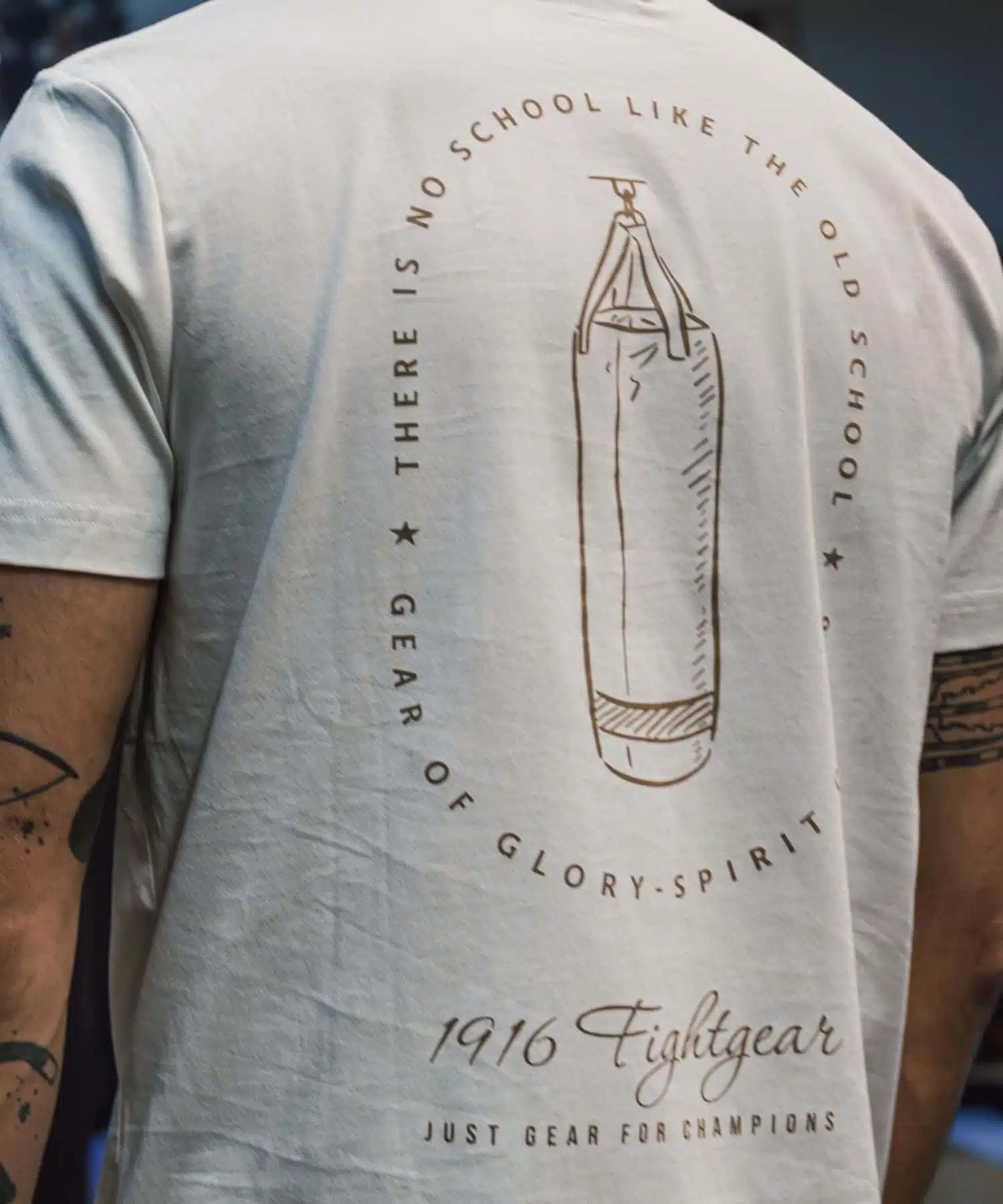 Stap in de ring van stijl met het 1916 Fight Gear Boxing Bag T-shirt. Dit shirt is ontworpen voor liefhebbers van de oude stempel, en dat zie je meteen aan de achterkant: een iconische bokszak-illustratie met daar omheen de woorden “There is no school like the old school”. Precies zoals het hoort.