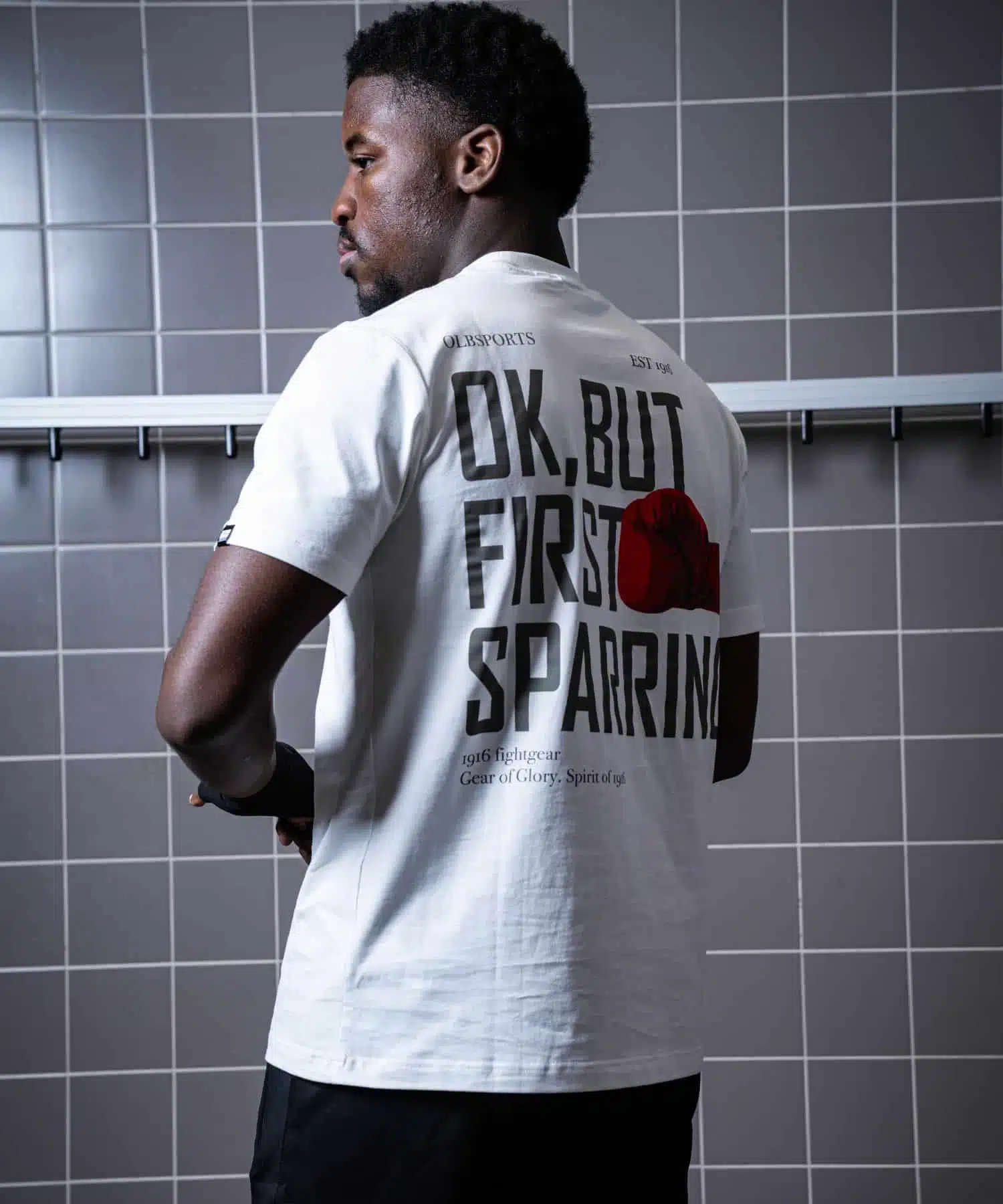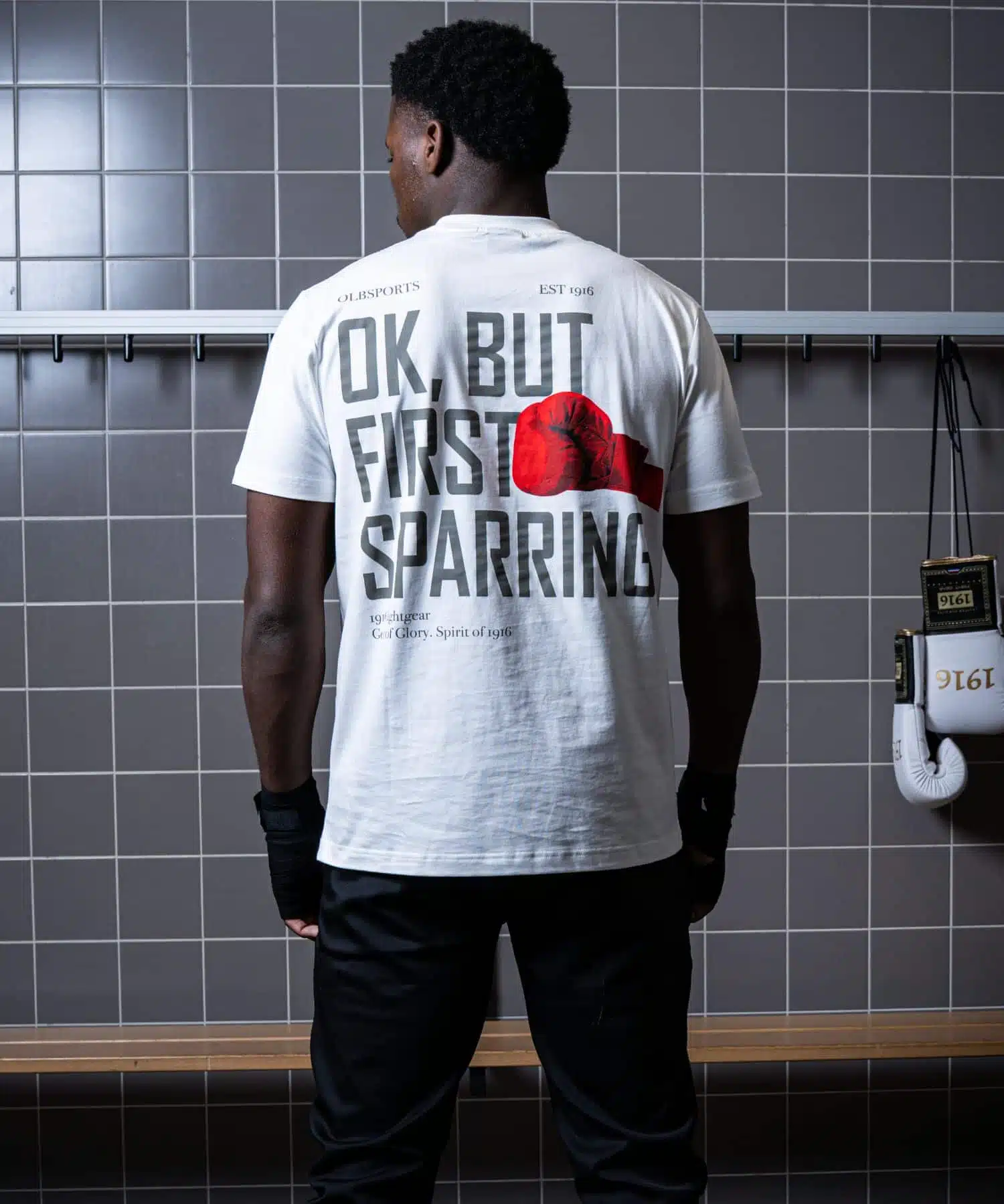 Laat je passie voor vechtsport spreken met het 1916 Fight Gear T-Shirt First Sparring Off White. Dit stijlvolle T-shirt is ontworpen voor echte vechters die hun lifestyle ook buiten de sportschool willen uitdragen. Met de iconische tekst “OK, BUT FIRST SPARRING” op de achterkant en een rode bokshandschoen als eyecatcher straal je kracht, motivatie en stijl uit. De voorkant is voorzien van een subtiel 1916 Fight Gear logo op de borst, en een extra label aan de onderzijde voor een premium afwerking.