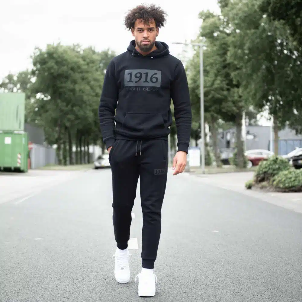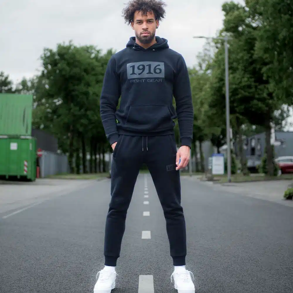 Op de linkerkant zit een mooi 1916 fight gear logo en heeft zakken met ritssluiting.