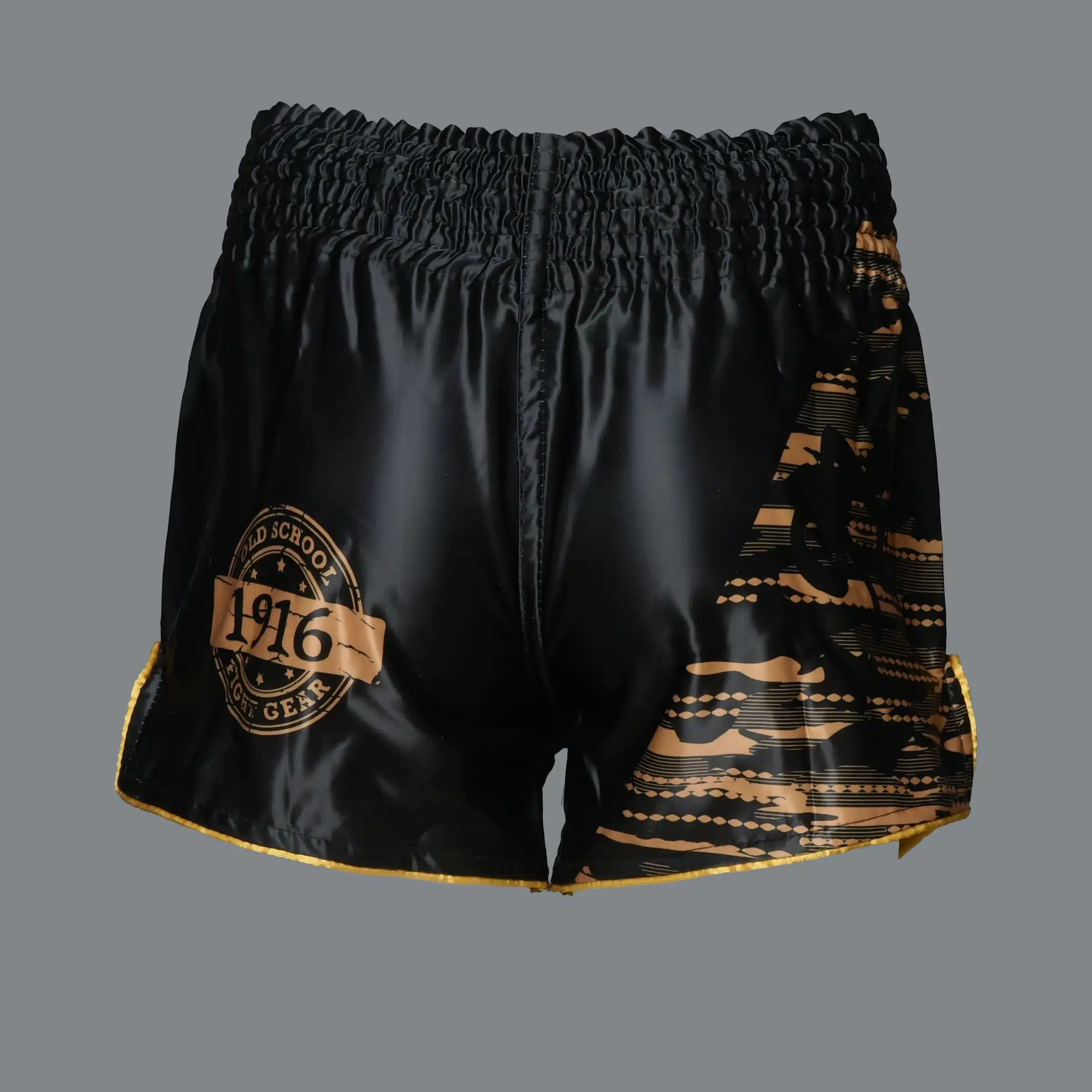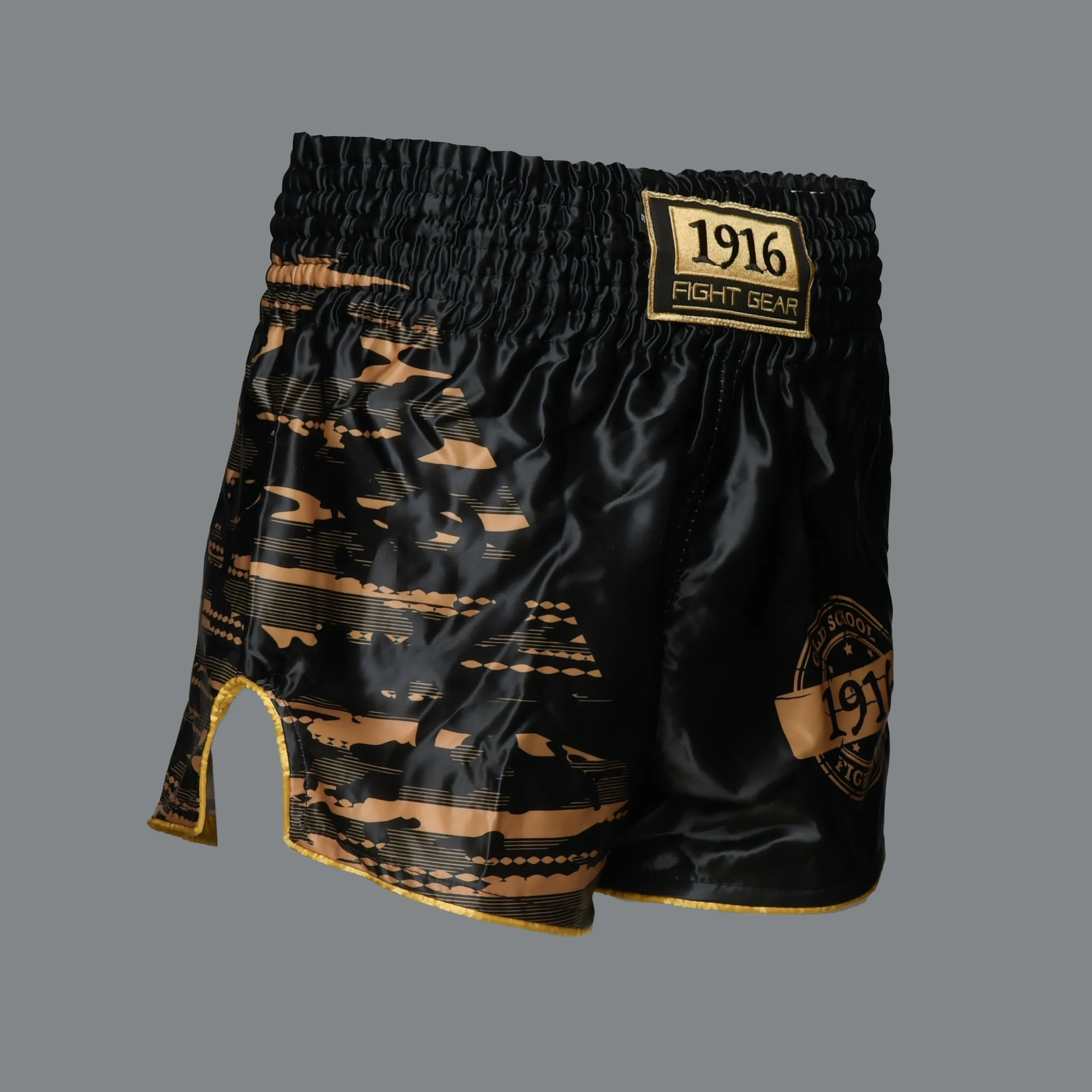 Het 1916 Fight Gear Kickboksbroekje Youth Fighter valt op door het klassieke “old school” logo van 1916, dat zowel aan de voorkant als aan de achterkant subtiel is verwerkt. Dit geeft het broekje een authentieke en tijdloze uitstraling. Daarnaast zijn de broekjes voorzien van unieke camo prints met daarin de kenmerkende letters “1916” verwerkt. Dit geeft het broekje een eigentijdse en trendy twist.