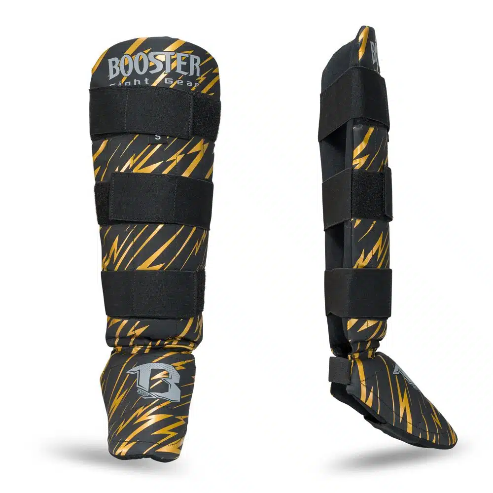 De bokshandschoenen in deze set zijn speciaal ontworpen voor de kleine vechters. Met meerlaagse schuimvulling voor uitstekende schokabsorptie en een veilige duimbevestiging, zorgen deze handschoenen voor maximale bescherming van de handen. De stevige klittenbandsluiting zorgt voor een comfortabele en stabiele pasvorm tijdens elke trainingssessie. - Booster Combat Serie Scheenbeschermers Kids