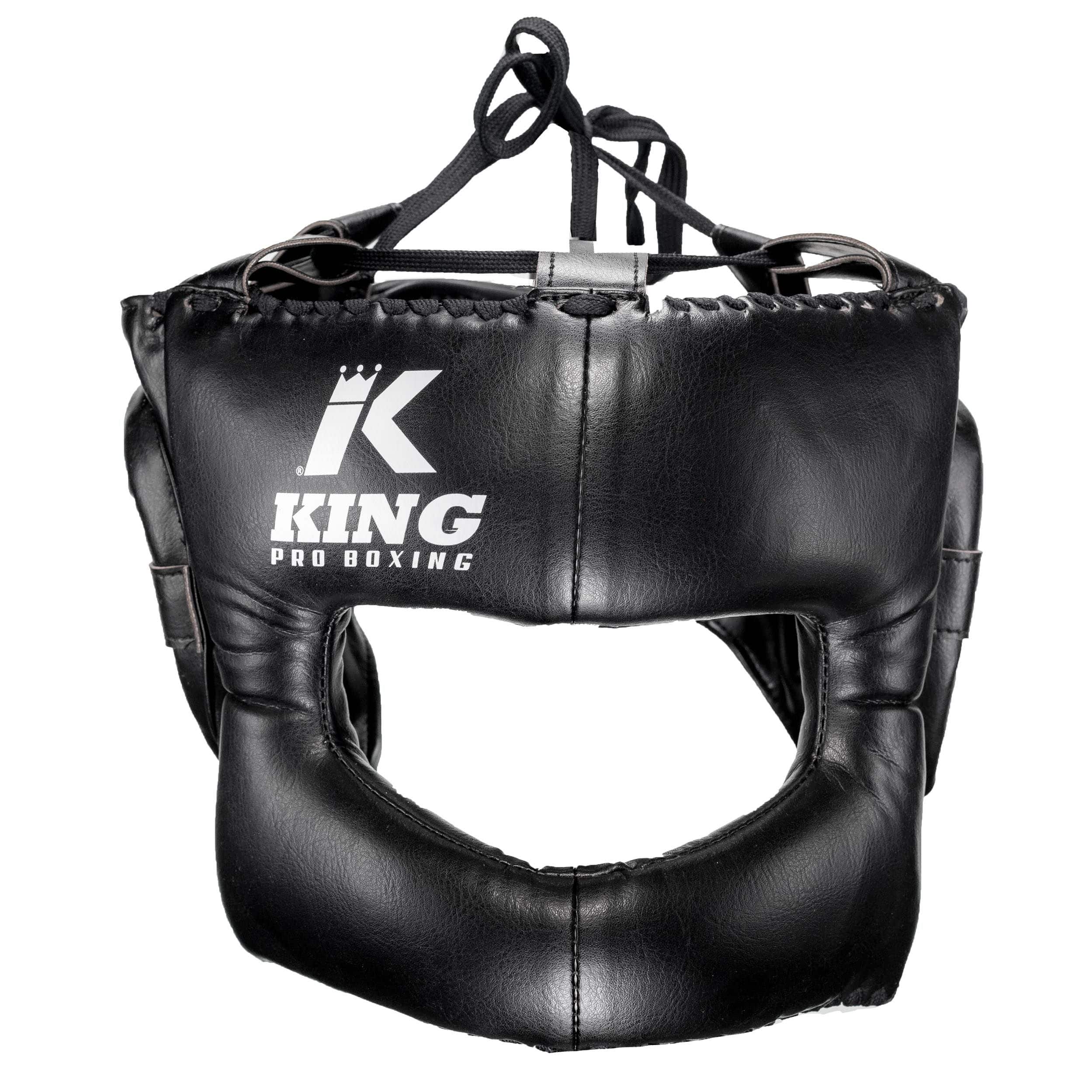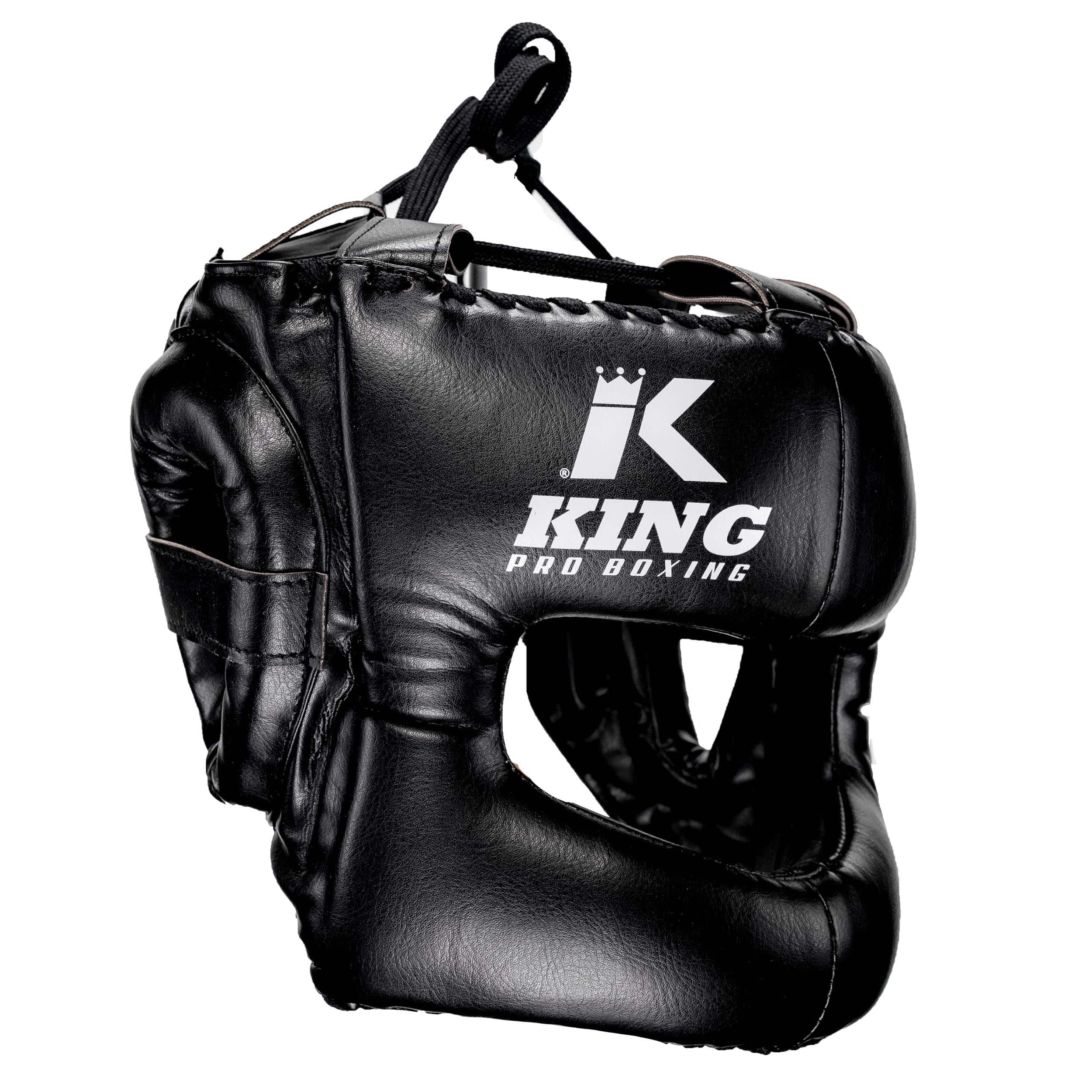 King pro boxing hoofdbeschermer. Gemaakt van 100% skintex leer. De hoofdbeschermer is makkelijk af te stellen op uw maat. De stalen frame in de hoofdbeschermer zorgt ervoor dat je goed beschermd wordt tegen harde klappen. De hoofdbeschermer beschermd ook uw neus.