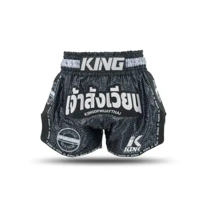 De King Pro boxing Kickboksbroek Origin 1 Black/White combineren Thaise traditie met een krachtig, modern ontwerp. Handgemaakt in Thailand, belichamen deze trunks kracht, eer en vastberadenheid. De Thaise tekst ‘King of the Ring’ op de voorkant en gedetailleerde borduurwerken stralen trots en vertrouwen uit, terwijl het ontwerp maximale bewegingsvrijheid biedt voor elke training en gevecht.
