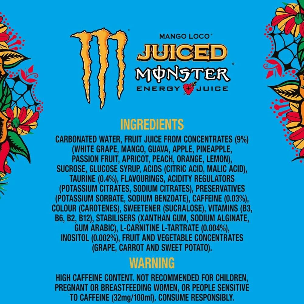 Beleef een tropisch feestje in elk blik met Monster Energy Juiced Mango Loco 500ml! Deze kleurrijke energiedrank combineert de legendarische Monster Energy Blend met de exotische smaken van mango, guave en andere tropische vruchten. Met 160 mg cafeïne en een mix van taurine, ginseng en B-vitamines geef je jouw dag een energieke kick. Waar en wanneer je maar wilt.