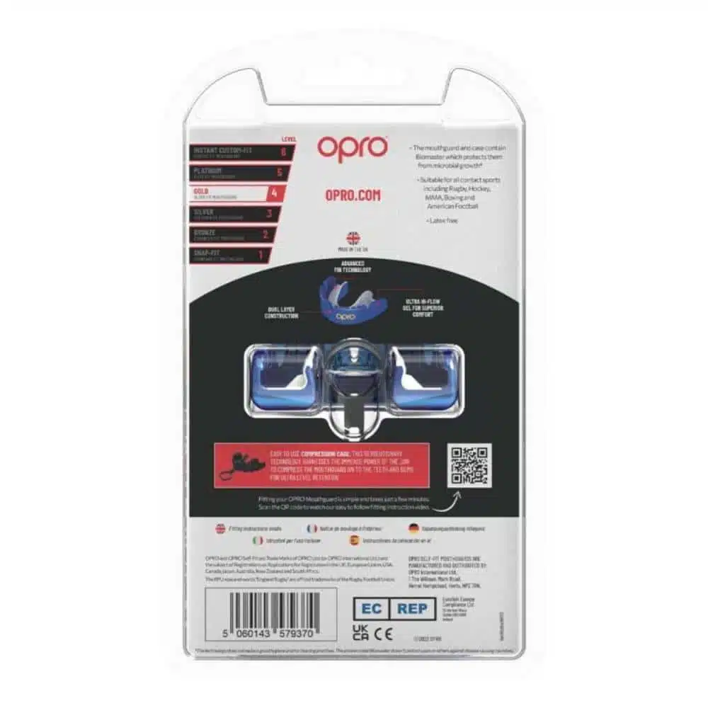 Het innovatieve ontwerp van dit bitje maakt gebruik van OPRO’s gepatenteerde vintechnologie en een handige compressiekooi, waardoor het bitje zich nauwkeurig vormt naar jouw gebit en beugel. Dit zorgt niet alleen voor een veilige en stevige pasvorm, maar ook voor een hoog draagcomfort tijdens elke training of wedstrijd. Dankzij de ultra-impactbestendige tweelaagse constructie ben je beschermd tegen zware impact, terwijl je moeiteloos blijft ademen en praten.
