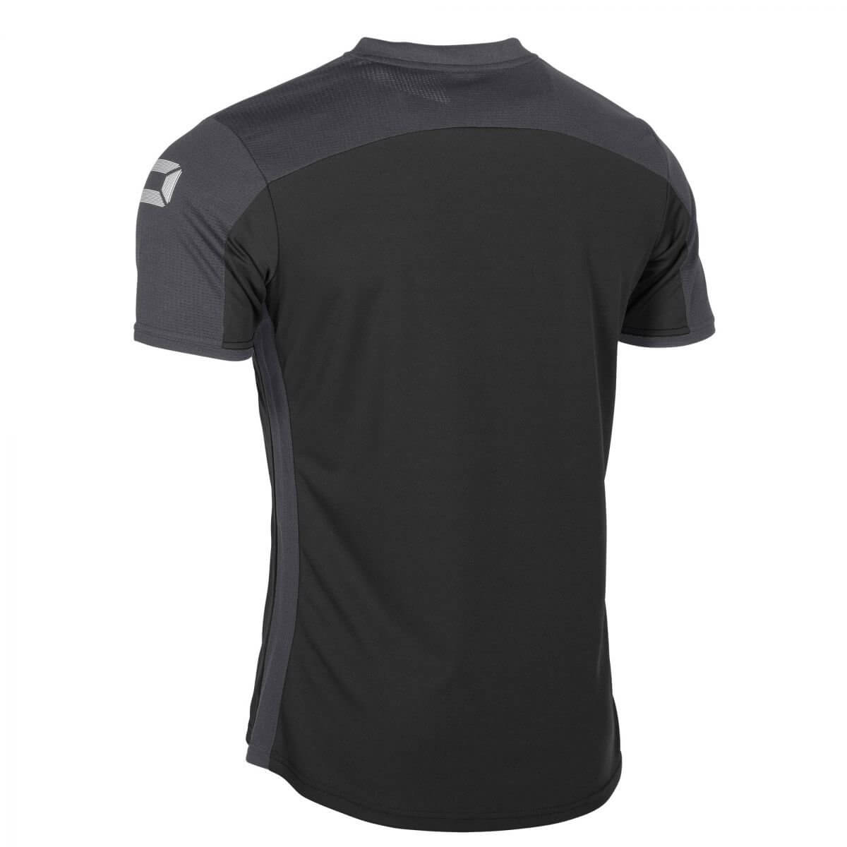 De Stanno Pride Shirt Zwart/Grijs heeft een net wat langere achterkant en heeft een mooie ronde afwerking. De taille van het t-shirt is ook van elastisch materiaal en zorgt hiervoor voor een perfect-fit.