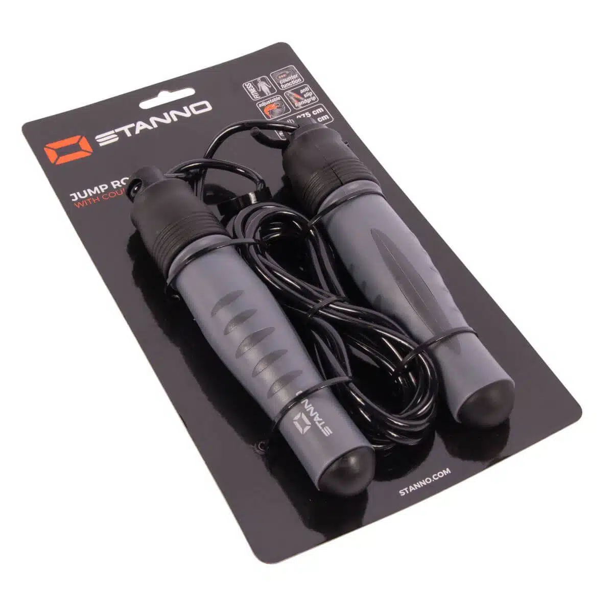Dit springtouw van Stanno is ideaal voor je workout door de sprongteller kan je elke sprong bij houden. De handgrepen beschikken over een anti slip materiaal voor extra vastigheid. Het springtouw is gemaakt van PVC/TPR en is makkelijk in lengte te verstellen.