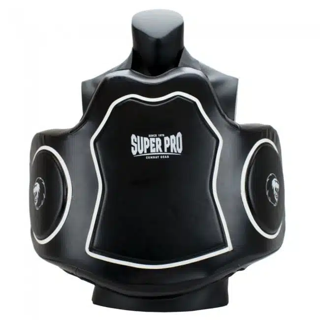 De body protector is uitgevoerd in PU. Dit materiaal is uiterst sterk en duurzaam. Door de perfect constructie van de verstelbare riemen aan de achterzijde blijft deze protector perfect op zijn plaats zitten. Super Pro Combat Gear staat al sinds 1978 bekend om haar buitengewoon goede kwaliteit. Dit komt doordat er geen concessies in materiaal keuze en comfort gedaan worden. De producten zijn constant doorontwikkeld door toonaangevende trainers en wereldkampioenen. Zij weten als geen ander aan welke eisen de producten moeten voldoen