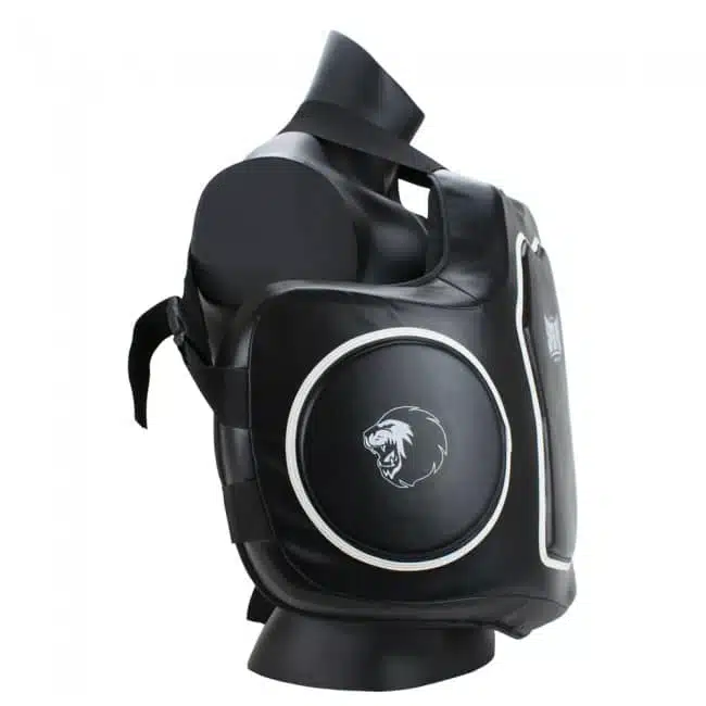 Deze Super Pro Combat Gear bodyprotector Is ontwikkeld door een van ’s werelds beste kickbokstrainers, altijd werkende met zwaargewichten weet hij als geen ander hoe belangrijk de bescherming van een bodyprotector is. De Gladiator bodyprotector beschermt uw lichaam perfect aan de voorkant en zijkanten. Uitgevoerd met drie duidelijke hit targets maakt dit product tot de beste in zijn soort. De beschermer heeft een dikte van maar liefst 10 cm. De padding in de bodyprotector is opgebouwd uit 4 lagen materiaal van zeer hoogwaardige kwaliteit en reduceren de stoten en trappen tot een maximum. Ondanks de dikke bescherming is de beschermer erg licht.