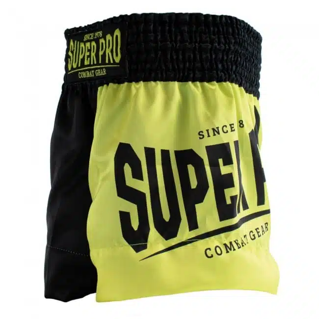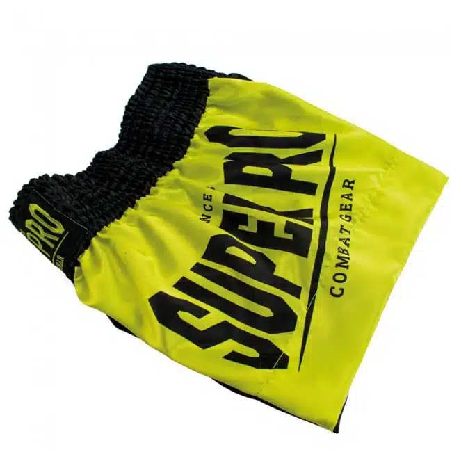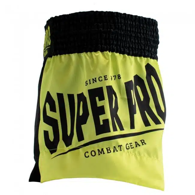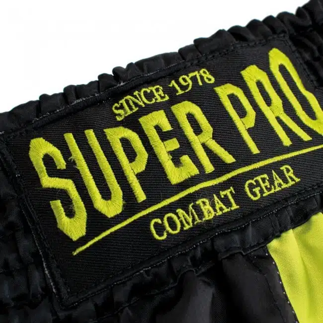 Deze Super Pro Combat Gear kickboksbroek zijn gemaakt van Satijn polyester dat zeer comfortabel aanvoelt. De kickboksbroek heeft een ronde split wat zorgt voor de perfect bewegingsvrijheid die nodig is tijdens het sporten. De short heeft een brede elastieken band en touwtjes aan de binnenzijde om de broek nog extra aan te trekken.