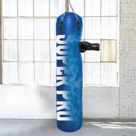 100 cm hoog met een diameter van 35 cm. Deze bokszak zal gevuld met water een gewicht van ongeveer 30 kg bereiken Deze maat is geschikt voor kinderen en volwassenen die alleen op de bokszak willen stoten. Een stevige bokszak met een goed gewicht.