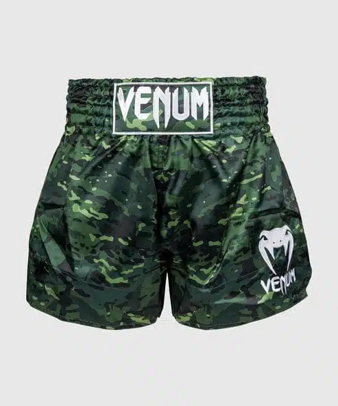 Ondertussen biedt een brede traditionele riem een veilige ondersteunende pasvorm rond de taille, zodat je je kunt concentreren op je prestaties. Deze Muay Thai Classic shorts in Urban Camo hebben een strak ontwerp, met nette afwerkingen en het onmiskenbare Venum-logo op de taille en benen.