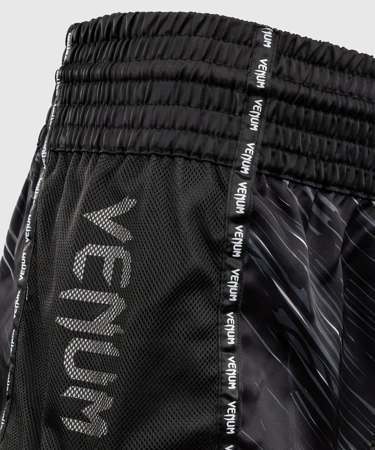 ✔ Gesublimeerd design – Levendige zwart-grijze print met wit Venum-logo