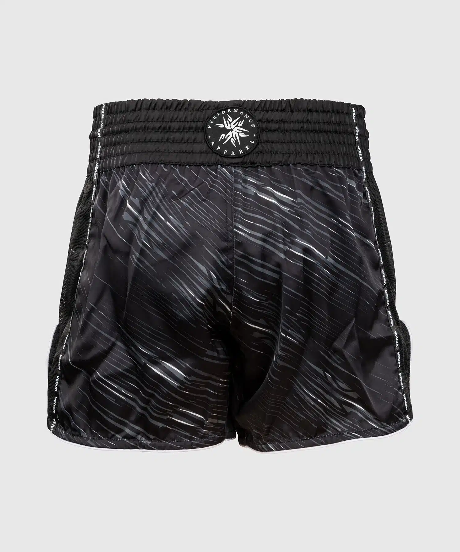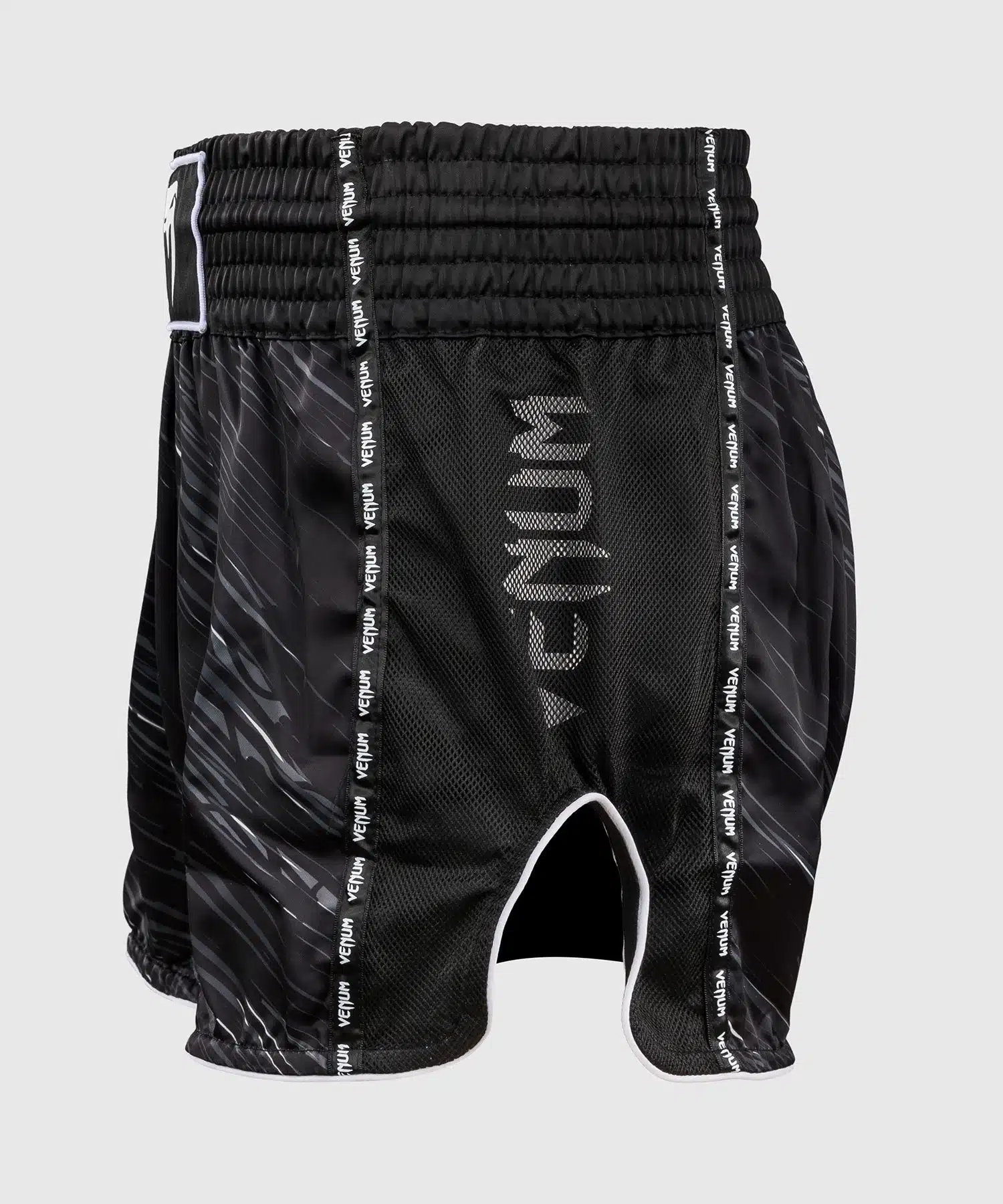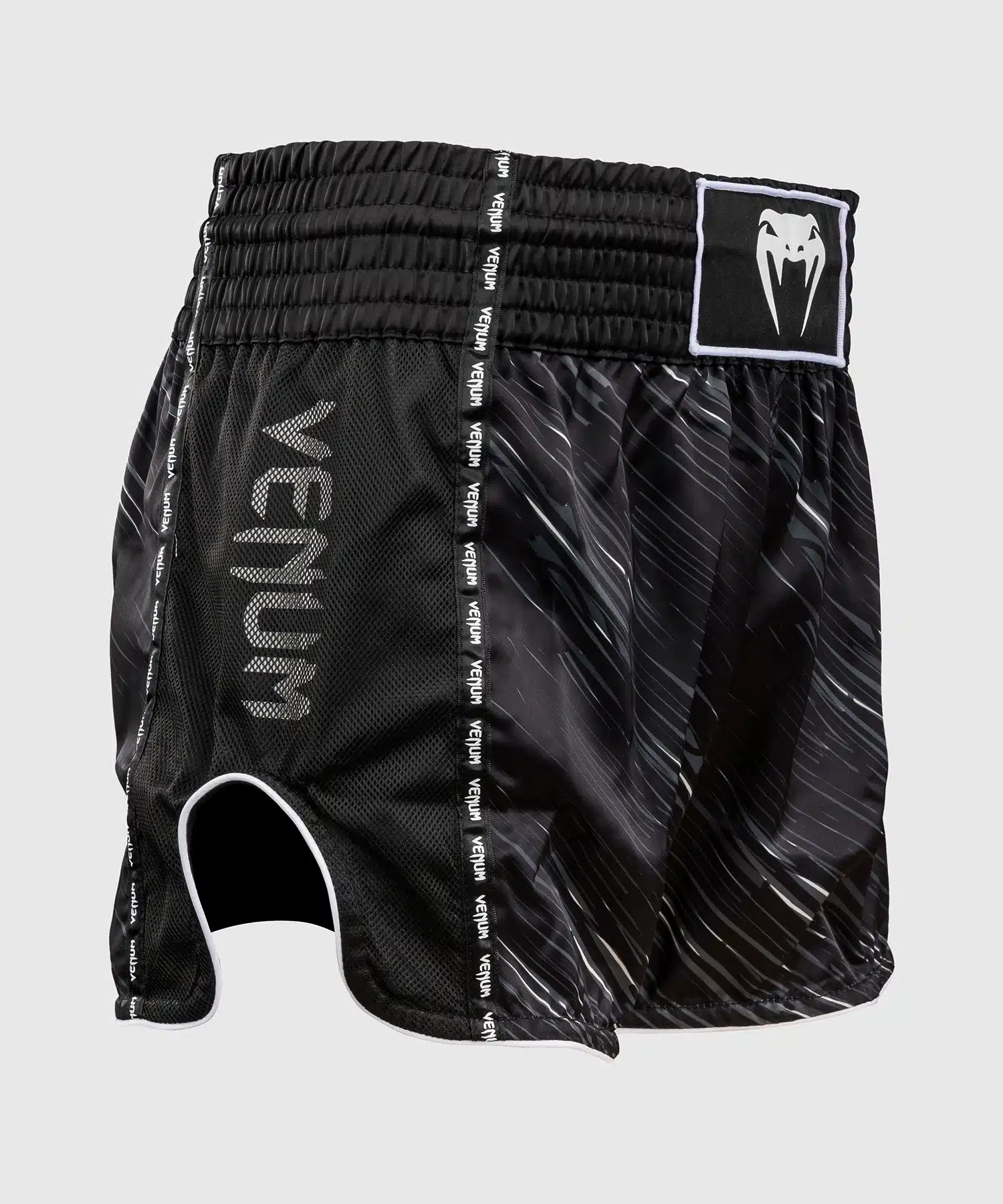 De Venum Muay Thai Shorts Rapid Black/Storm Grey zijn jouw ideale partner – met lichtgewicht flexibel materiaal dat meebeweegt bij elke trap, zijsplitten die je volledige bewegingsvrijheid geven, en een traditionele brede tailleband die stevig blijft zitten tijdens de meest intense clinchwork.