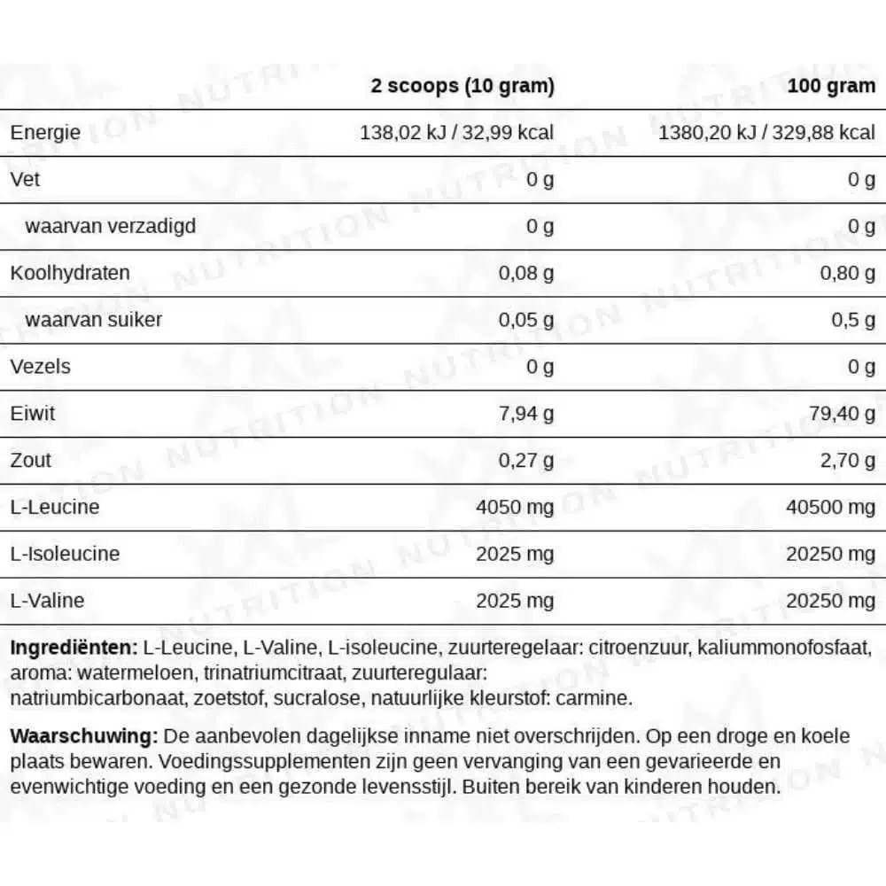 XXL Nutrition BCAA Poeder Tropical. Wanneer we het hebben over BCAA’s, hebben we het eigenlijk over drie essentiële aminozuren: Leucine, Isoleucine en Valine. De BCAA’s zijn bij dit product verdeeld in de verhouding 2:1:1. BCAA’s worden al jaren binnen alle sporten gebruikt.