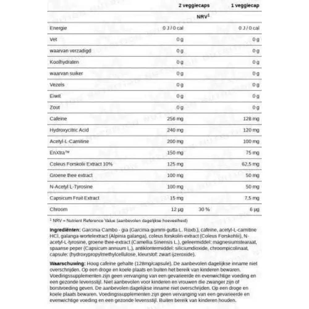 Ben je op zoek naar de meest krachtige fat burner op de markt? Dan is de Fat Killer Black Edition voor jou! Deze Fat Killer bevat maar liefst 120 veggiecaps, die stuk voor stuk barsten van de meest krachtige ingrediënten. Net als de Fat Killer beschikt ook de black edition over een optimale verhouding van kwalitatief hoogwaardige ingrediënten, maar dan in een nóg krachtigere samenstelling. Denk hierbij aan cafeïne, hydroxyctric acid en EnXtra™. Ook de Fat Killer Black Edition van XXL Nutrition is samengesteld door professionals, zodat je zeker weet dat je enkel ingrediënten van de meest hoogwaardige kwaliteit gebruikt.