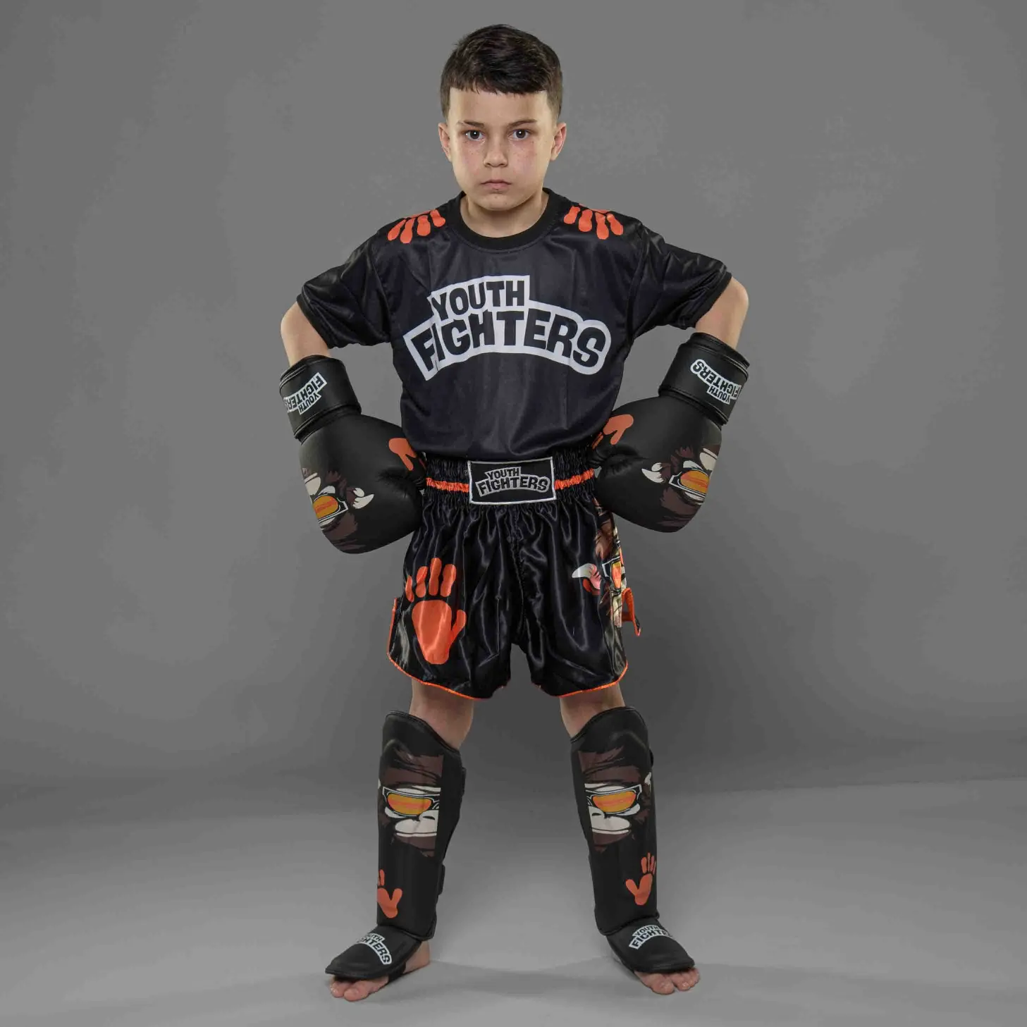 De Youth Fighters Kickboks Set Kids Monkey is dé complete vechtsportset voor jonge strijders die houden van stijl, comfort en bescherming. Deze set bestaat uit: