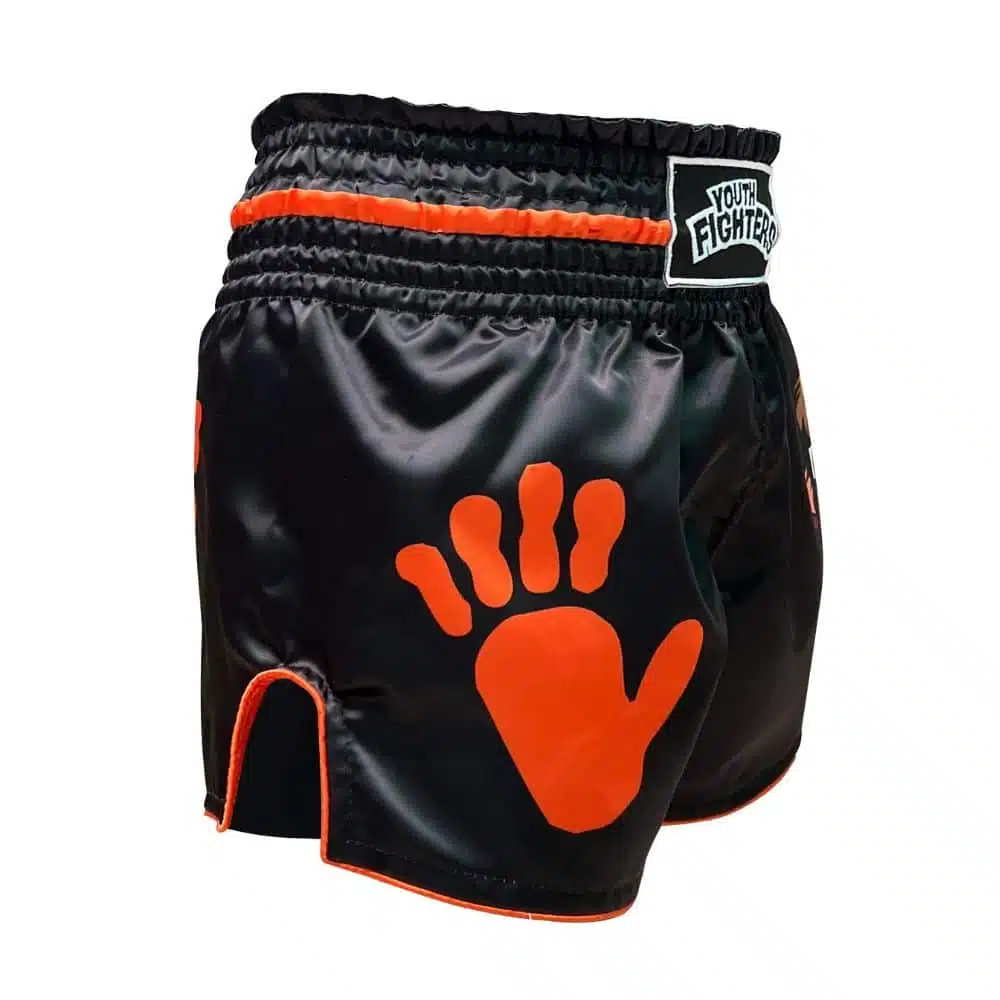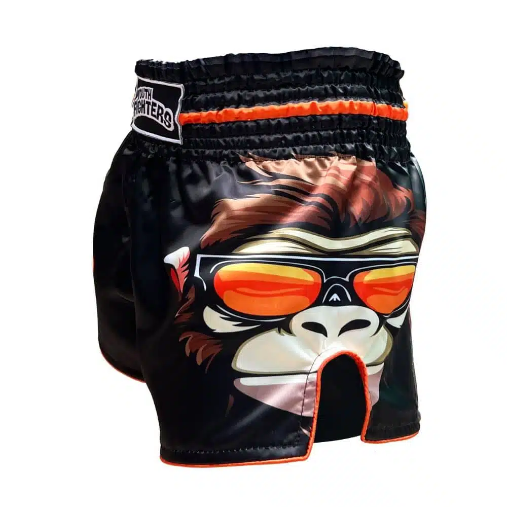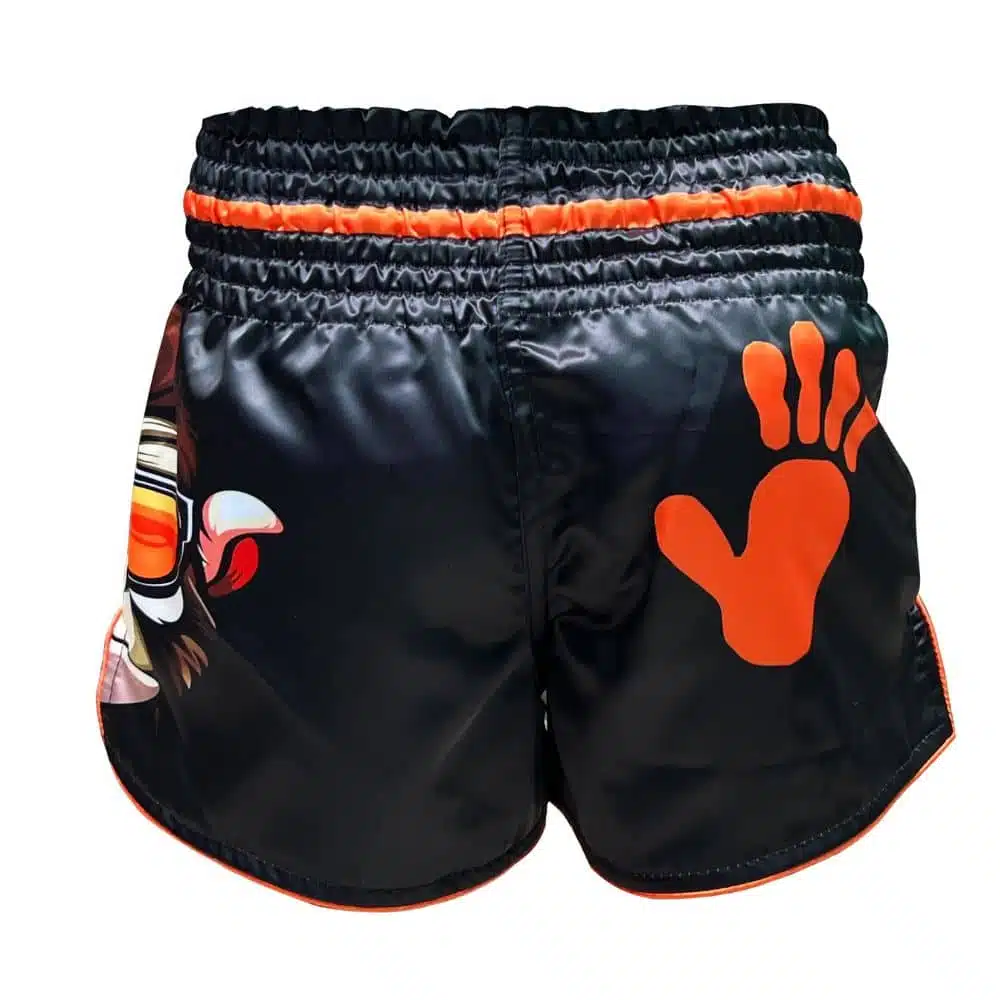 Laat jouw kleine vechter opvallen in de gym met de Youth Fighters Kickboksbroek Kids Monkey! Deze kinder kickboksbroek is speciaal ontworpen voor jonge strijders die durven te shinen. Het opvallende design met de coole monkey met zonnebril en de oranje handafdrukken maakt dit broekje een echte blikvanger.